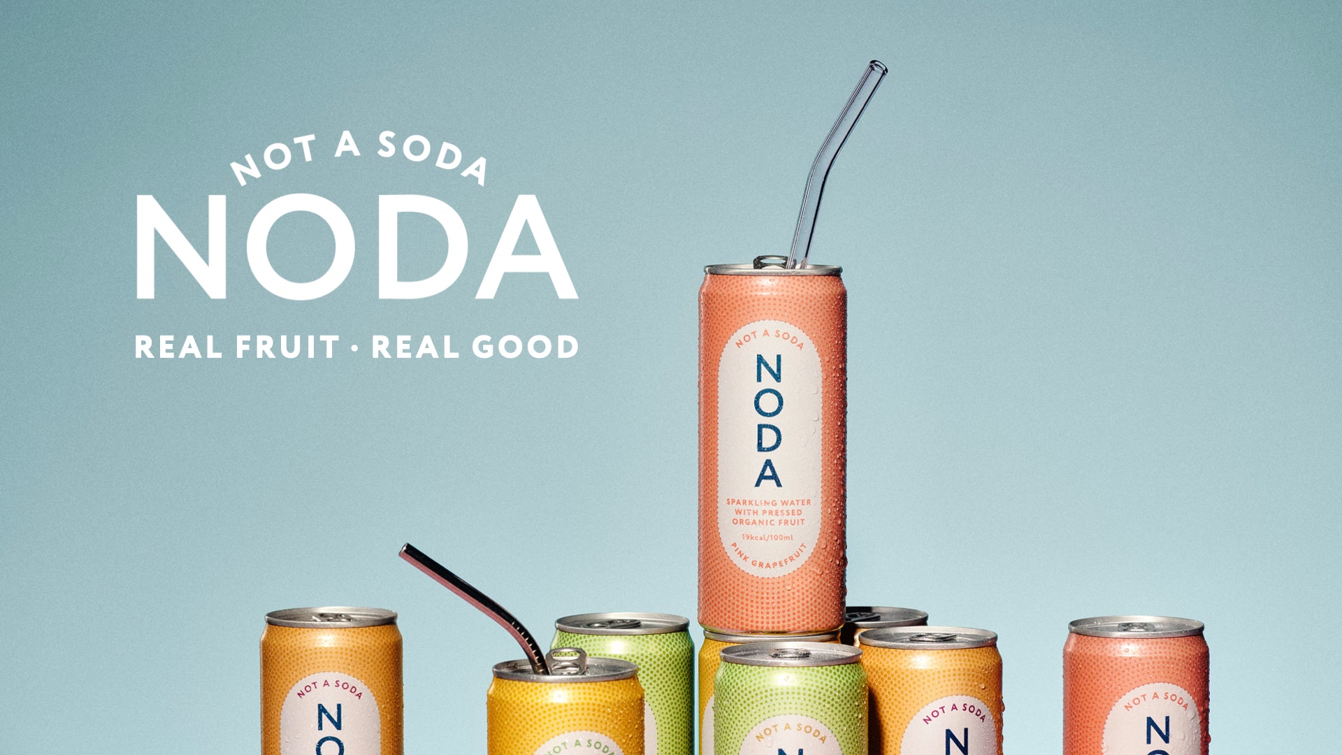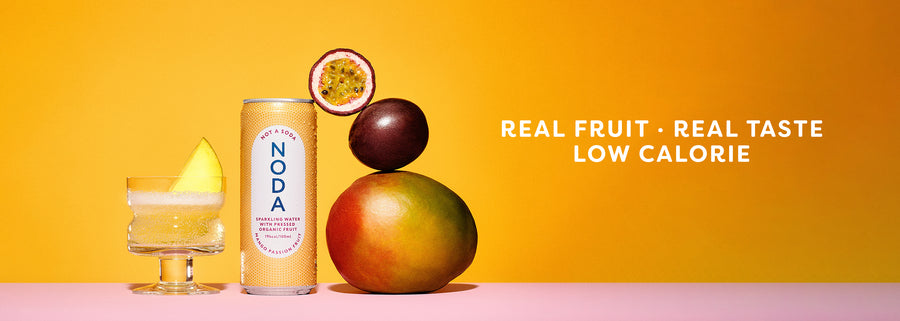 NODA er vand med bobler og 30% presset frugt. Altid økologisk, op til 70% færre kalorier end en sodavand.